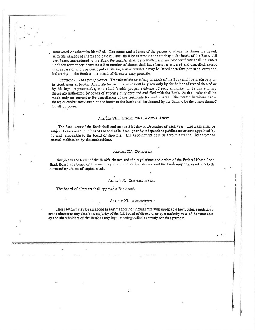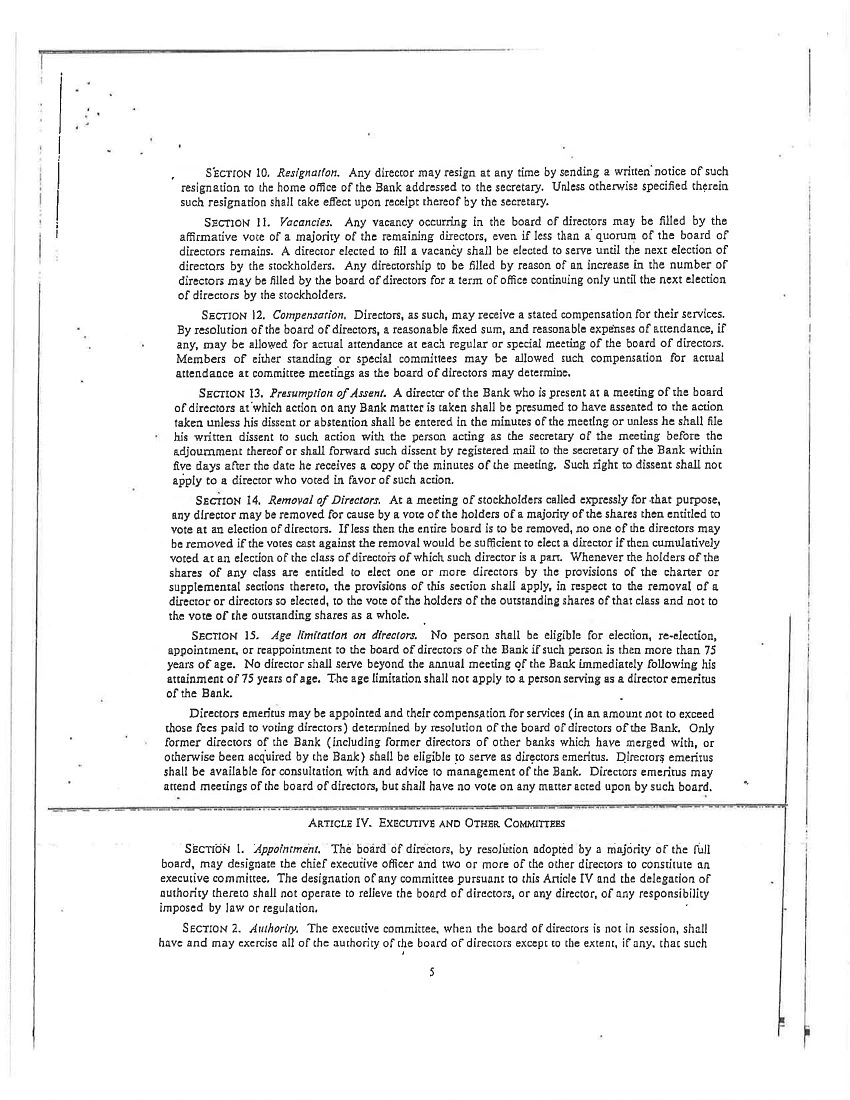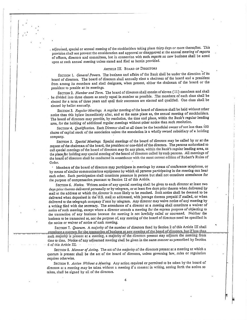 | Exhibit 4. | A copy of the existing bylaws of the trustee, or instruments corresponding thereto. | |