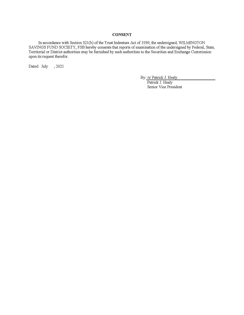 Pursuant to the requirements of the Trust Indenture Act of 1939, as amended, the trustee, Wilmington Savings Fund Society, FSB, a federal savings bank organized and existing under the laws of the United States of America, has duly caused this Statement of Eligibility to be signed on its behalf by the undersigned, thereunto duly authorized, all in the City of Wilmington and State of Delaware on the 7th day of July, 2021.